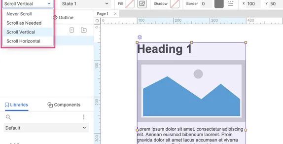 - With the dynamic panel selected, select Scroll Vertical in the scrolling dropdown in the Style toolbar or the Style pane.