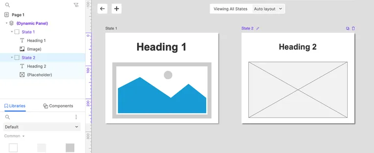 Dynamic panels are containers with multiple states, and you can easily change which state is visible using interactions. This makes it easy to swap content to demonstrate functionality. In addition, here are some more things you can do with dynamic panels: