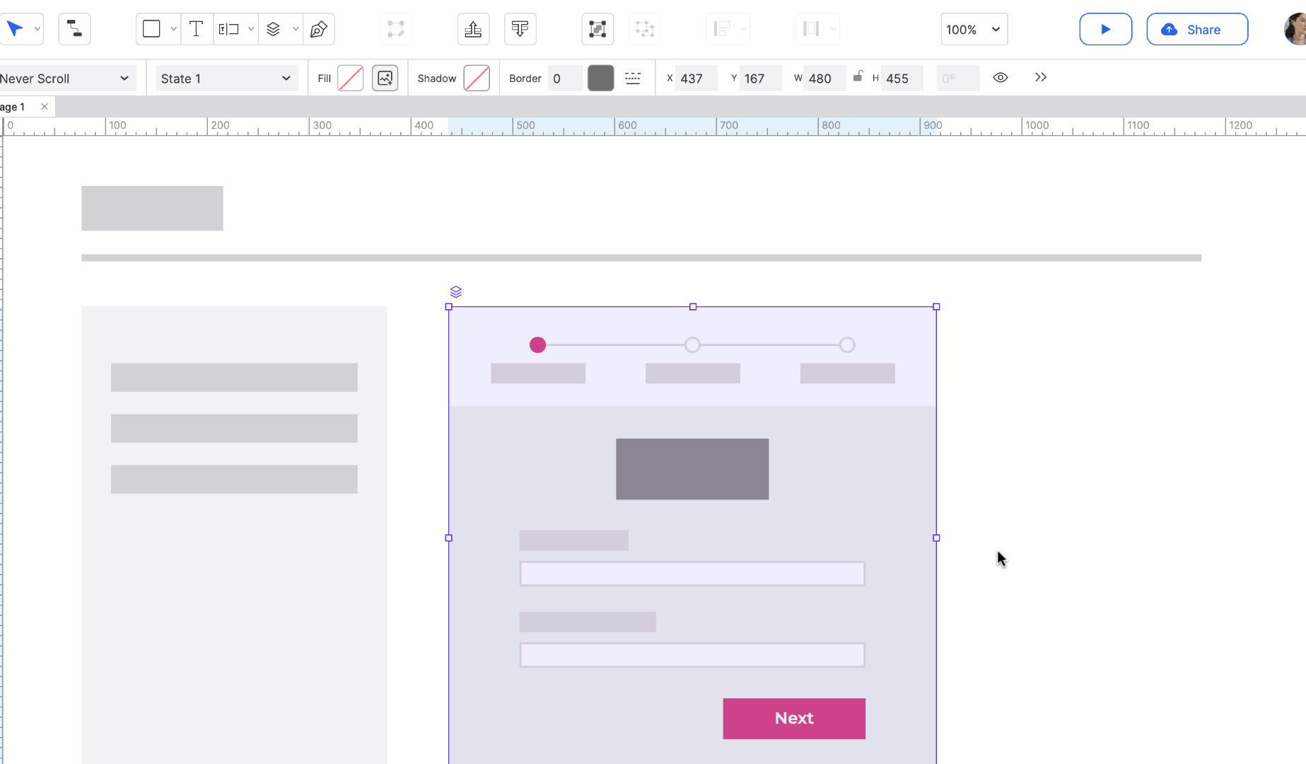 Another common use of dynamic panels is to create scrolling regions within the page. Follow the steps below to try converting widgets to a dynamic panel and making them scroll.