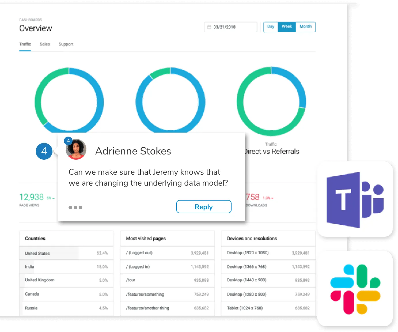With just a click, publish your wireframes to a single link to gather feedback and quickly share your ideas. Keep your team up to date with integrations to Jira, Slack, and Microsoft Teams.