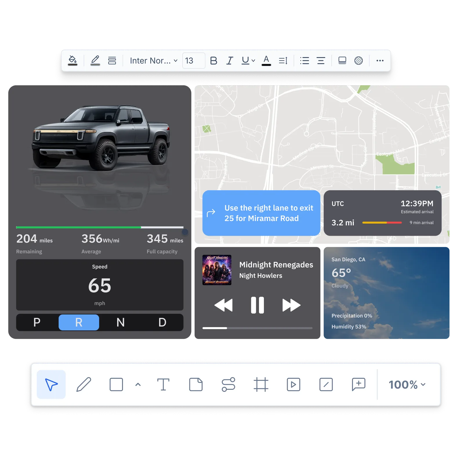 Capture and collaborate on your design with stickies, diagrams, and detailed UI on the canvas
