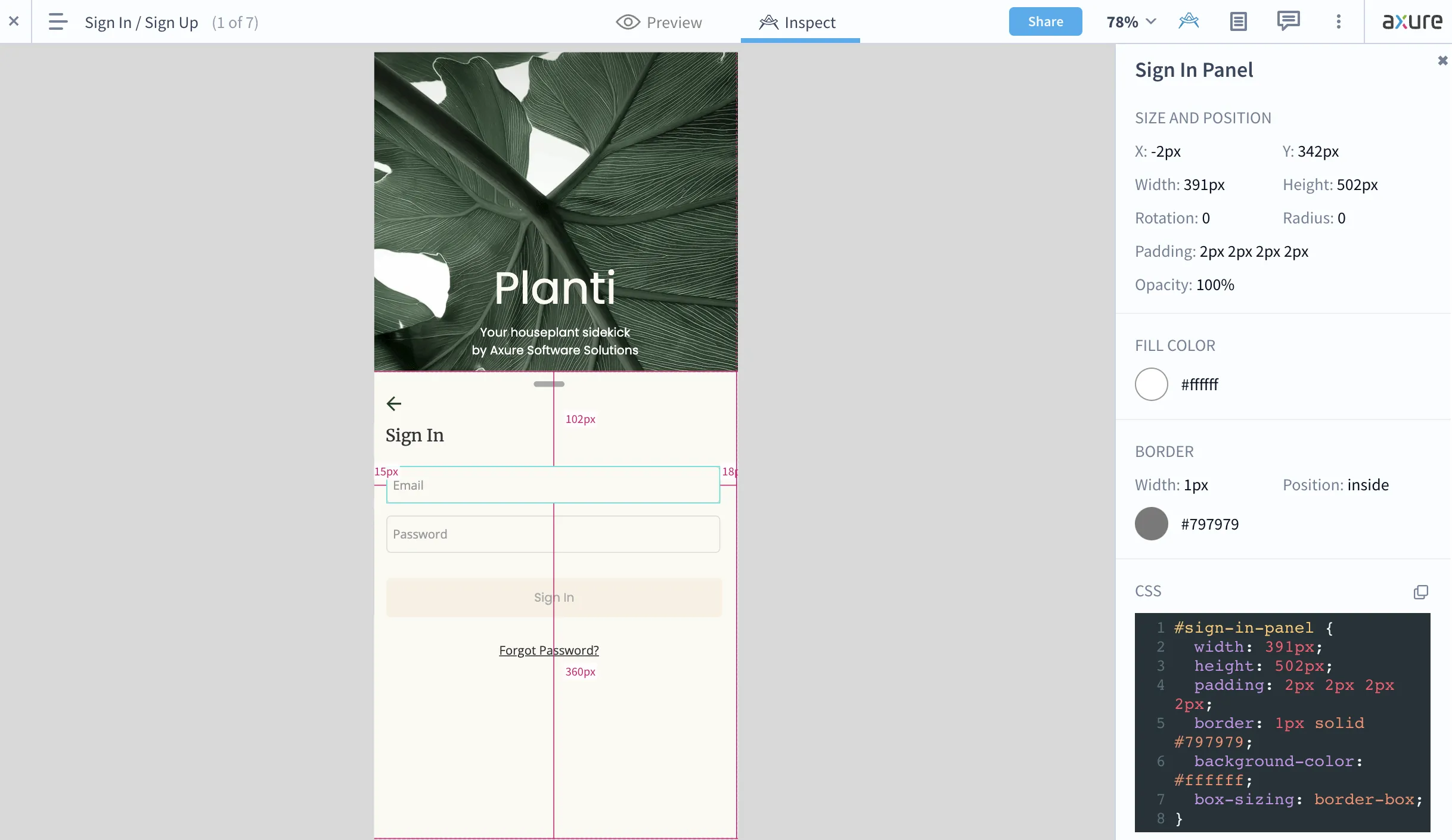 The Inspect tools also come in handy for engineers and developers. When viewing a project, the ability to use an inspect tool, prototype player, and an easy-to-share link in Axure Cloud all come in handy for development teams. Being able to view style, content, and layout information about the elements on the page, and the ability to download image assets makes development easier for the team.