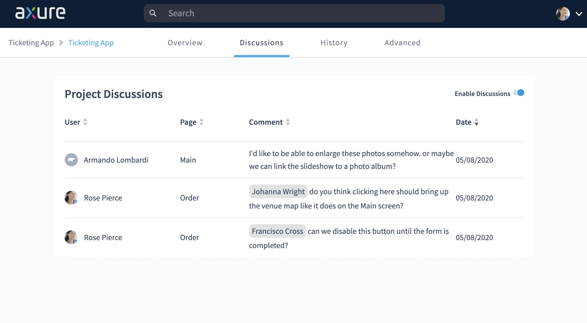 "I reference Axure Cloud prototypes when implementing new features. The PMs will define the behavior and appearance of what I will be building and I can ask them questions and send feedback pretty easily with the discussion comments. I use these comments a couple times a week or as needed to get clarity on the work I'm doing, and I get notified right away when they respond."