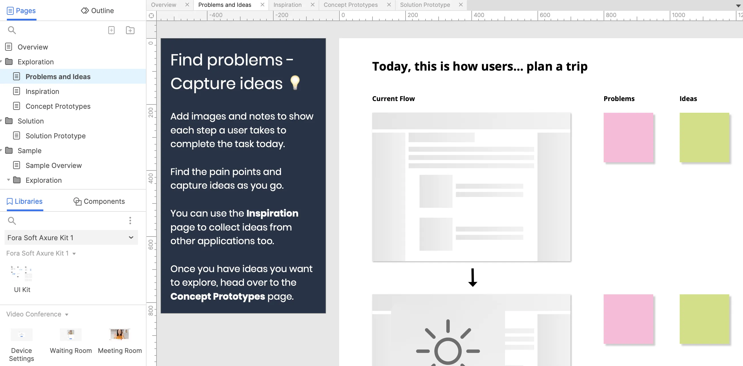 - Prototype solutions: Based on the feedback you've collected and analyzed, come up with solutions to address the problems users are experiencing. Be sure to consider the trade-offs of different solutions and choose the one that will have the most impact. When prototyping in Axure RP 10, using our readily available templates can be a great way to show new solutions –– from early concept exploration to detailed designs. Our new templates can also help with the handoff process, as they include note areas to detail what your proposed ideas are and why. Once the changes or new ideas are put into place, be sure to test them with users to ensure that they have the desired effect and make any additional adjustments as needed.