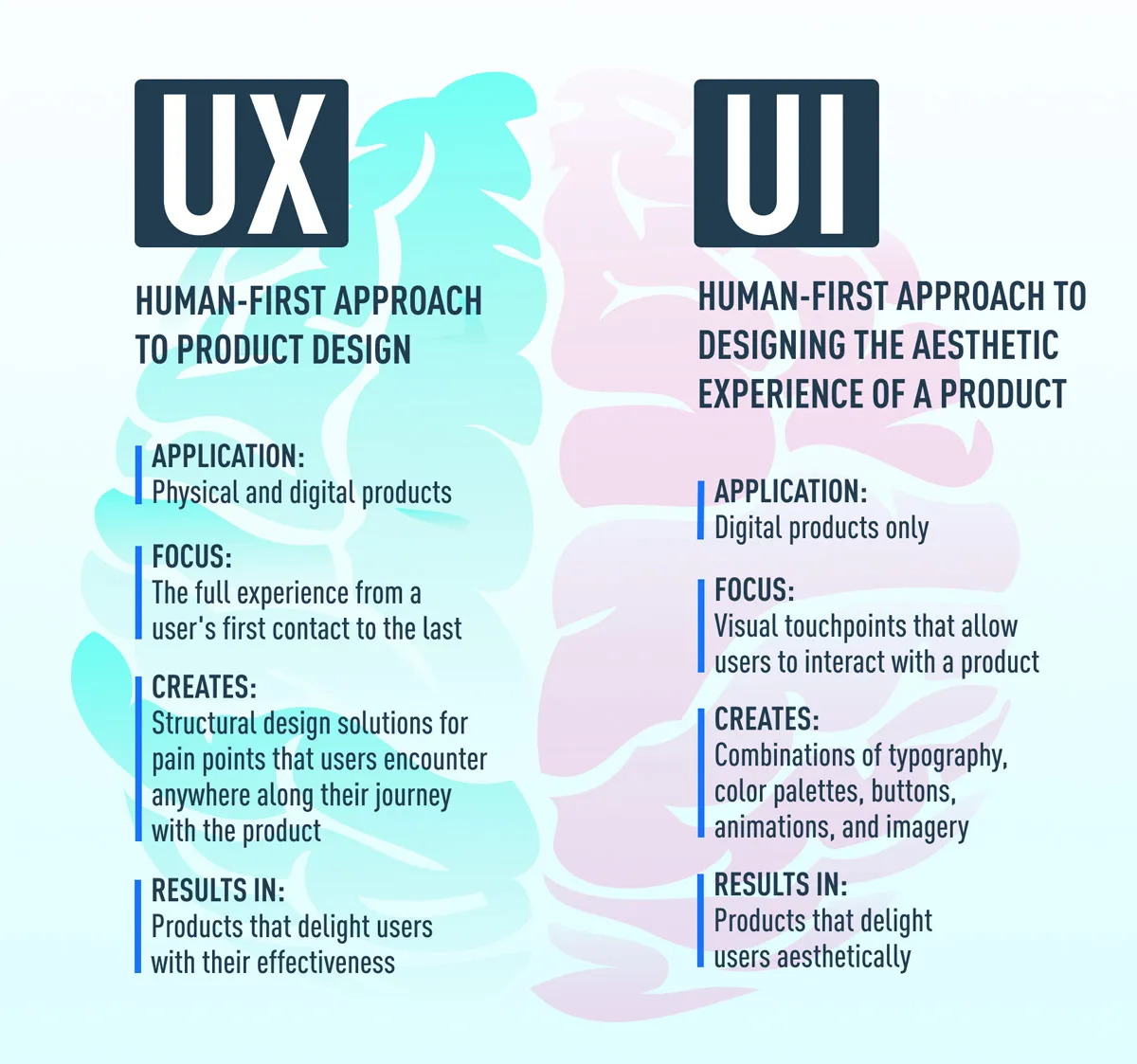 Overall, UX and UI design, while similar in nature, have their own unique differences that add value to different aspects of your product's overall design. By understanding their differences and focusing on the strengths of each, you can create UX and UI designs that compliment each other well and improve your overall product.