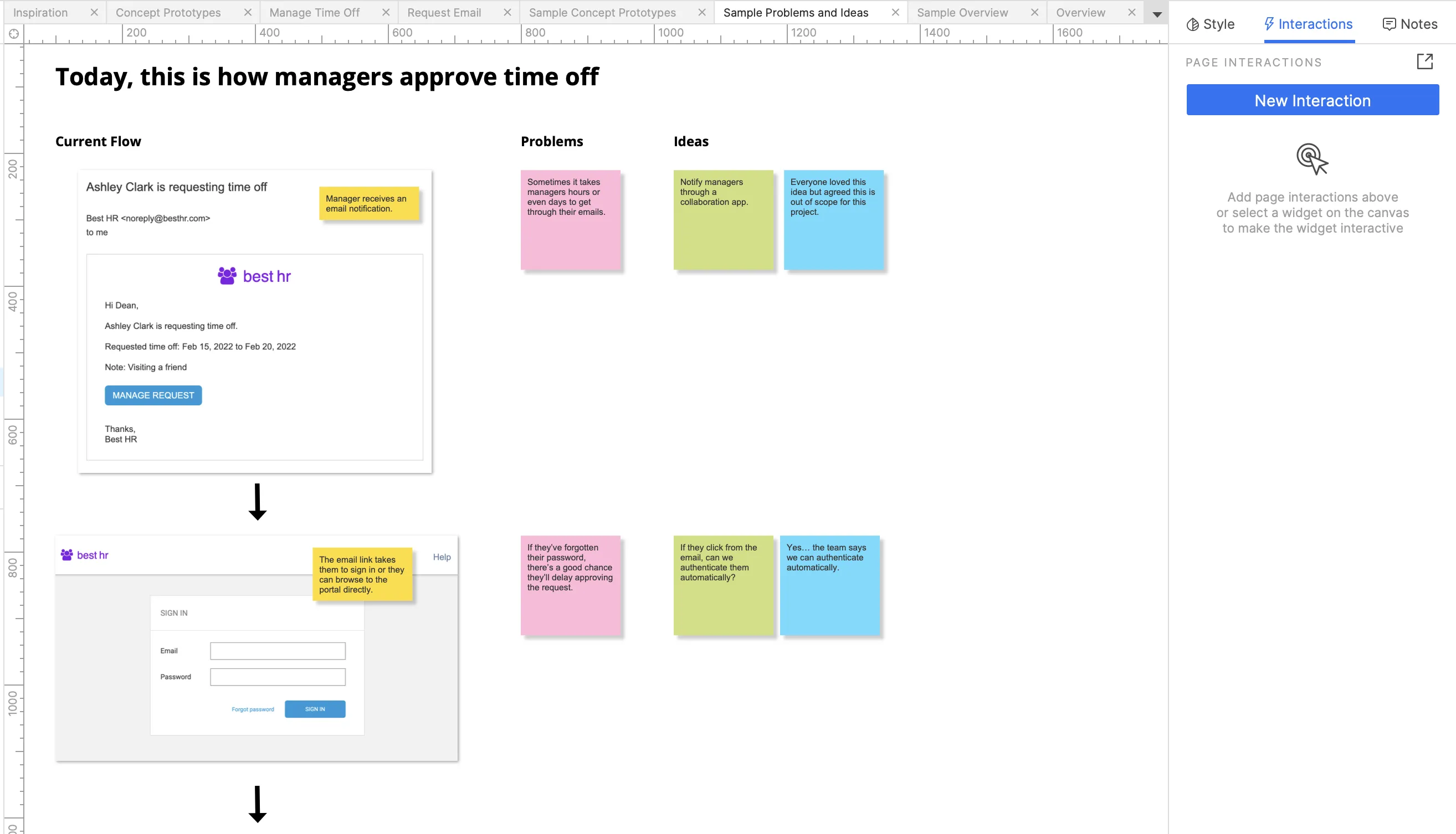 In addition to helping me stay organized with my projects, especially when it comes to presenting early concepts, this template is also great for developer handoff. Once we've landed on a solution, we'll create a user story in our issue tracking system, Jira, and embed the Solution prototype. It's perfect for an interactive specification for the developers. Team members can easily see how the project evolved over time - what other options were considered and why we decided to go with the final approach. It helps to tell the full story of the project and it's nice having that all in one place.