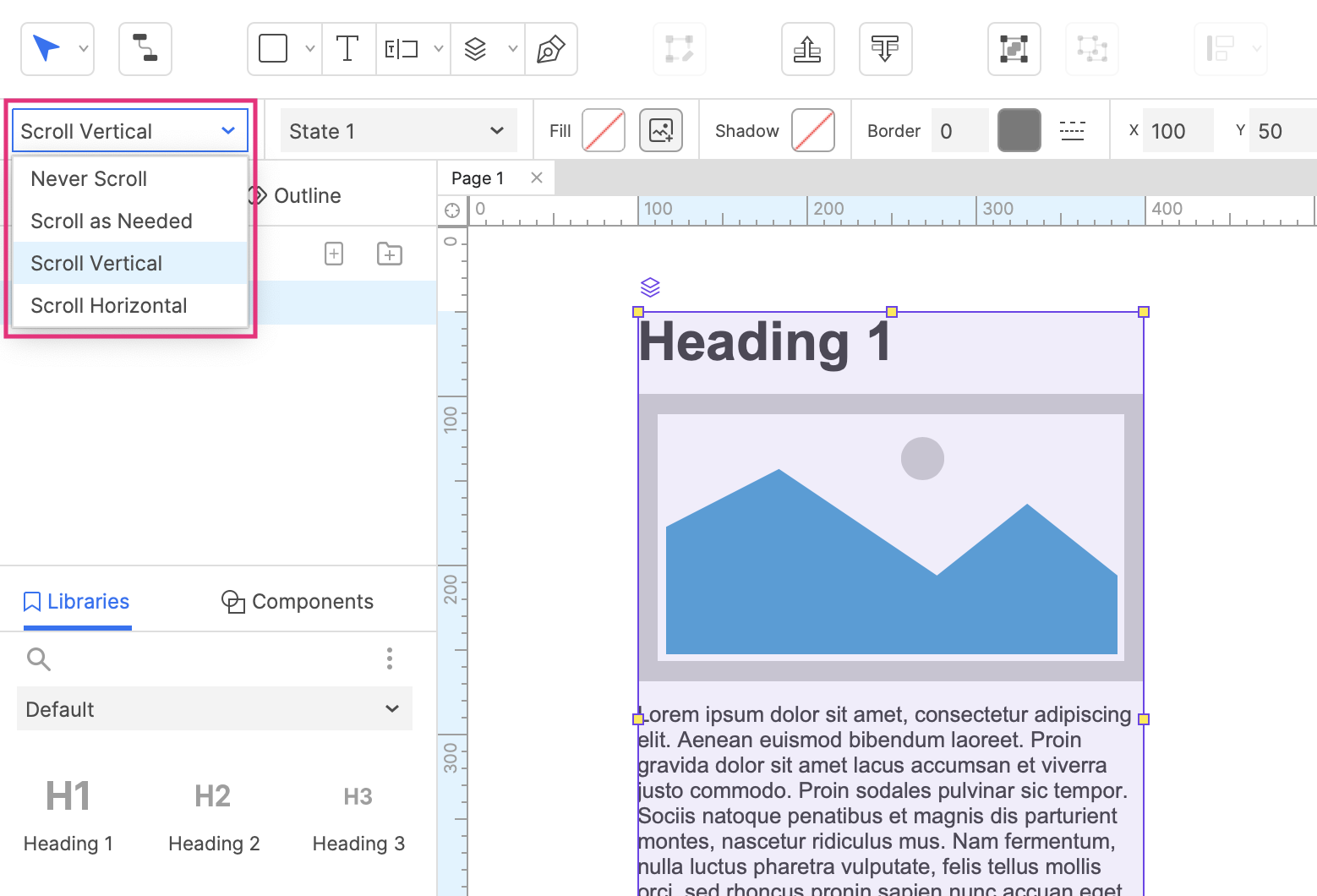 - With the dynamic panel selected, select Scroll Vertical in the scrolling dropdown in the Style toolbar or the Style pane.